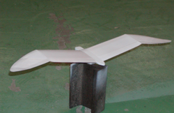 一番最初に作られたバルサ製の模型。ガル翼とは、カモメの翼のように途中で折れ曲がった翼のこと。実機としては古典グライダー機であるミニモアなどが有名。
