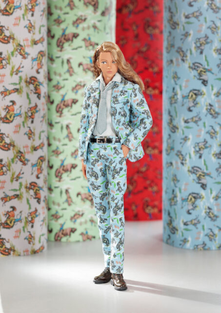「26干支 午 エイト PS」は褐色の肌に映える馬プリントスーツを軽やかに着こなし、午年の躍動感を引き立てるコーディネイトモデルです。