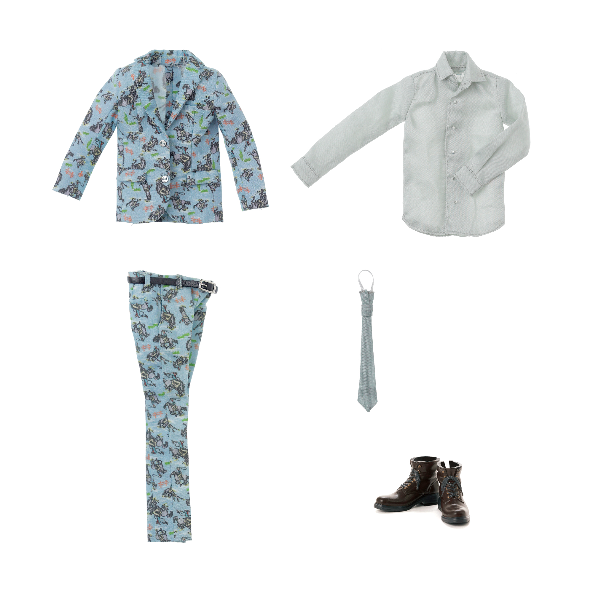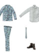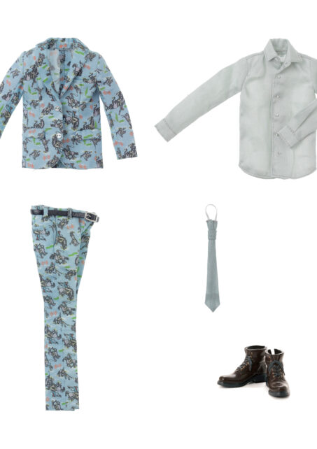 内容: エイト本体、ジャケット、ベルト付きスラックス、シャツ、ネクタイ、メンズワークブーツ。