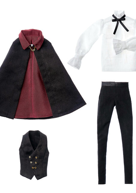 内容: マント、ダブルベスト、リボン付きブラウス、スキニーパンツ