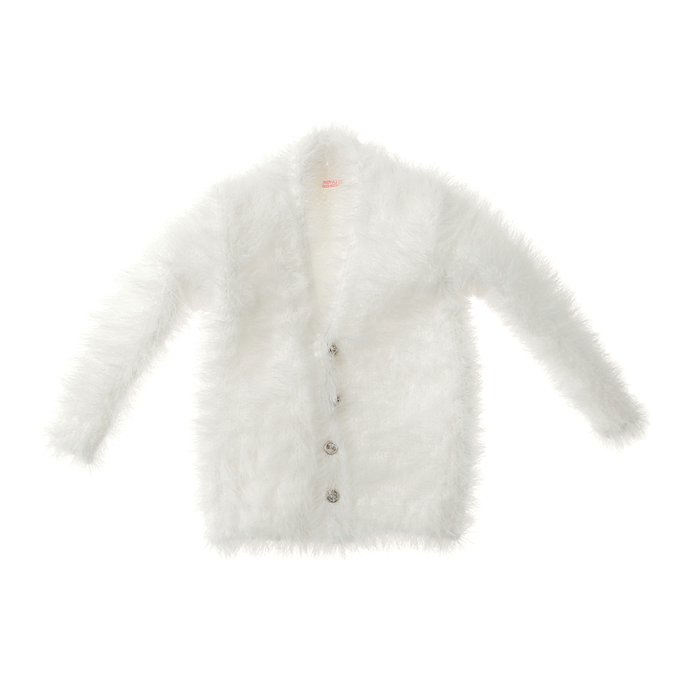 メンズサイズのシャギーカーディガンです。momokoもオーバーサイズで着用できます。ホワイト。