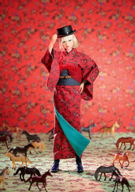 内容: PW-momoko本体、着物、ベルト付き作り帯、半襟付き肌着、帯揚、ゴム伊達締、Tバックショーツ、トップハット、10ホールブーツ(STOC)。