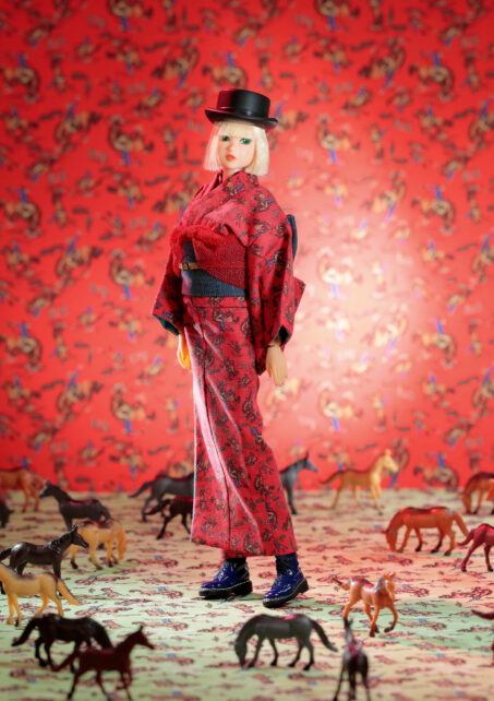 午年にちなんだ馬柄の着物をカジュアルに着こなした「CCS 26干支 momoko 午」です。