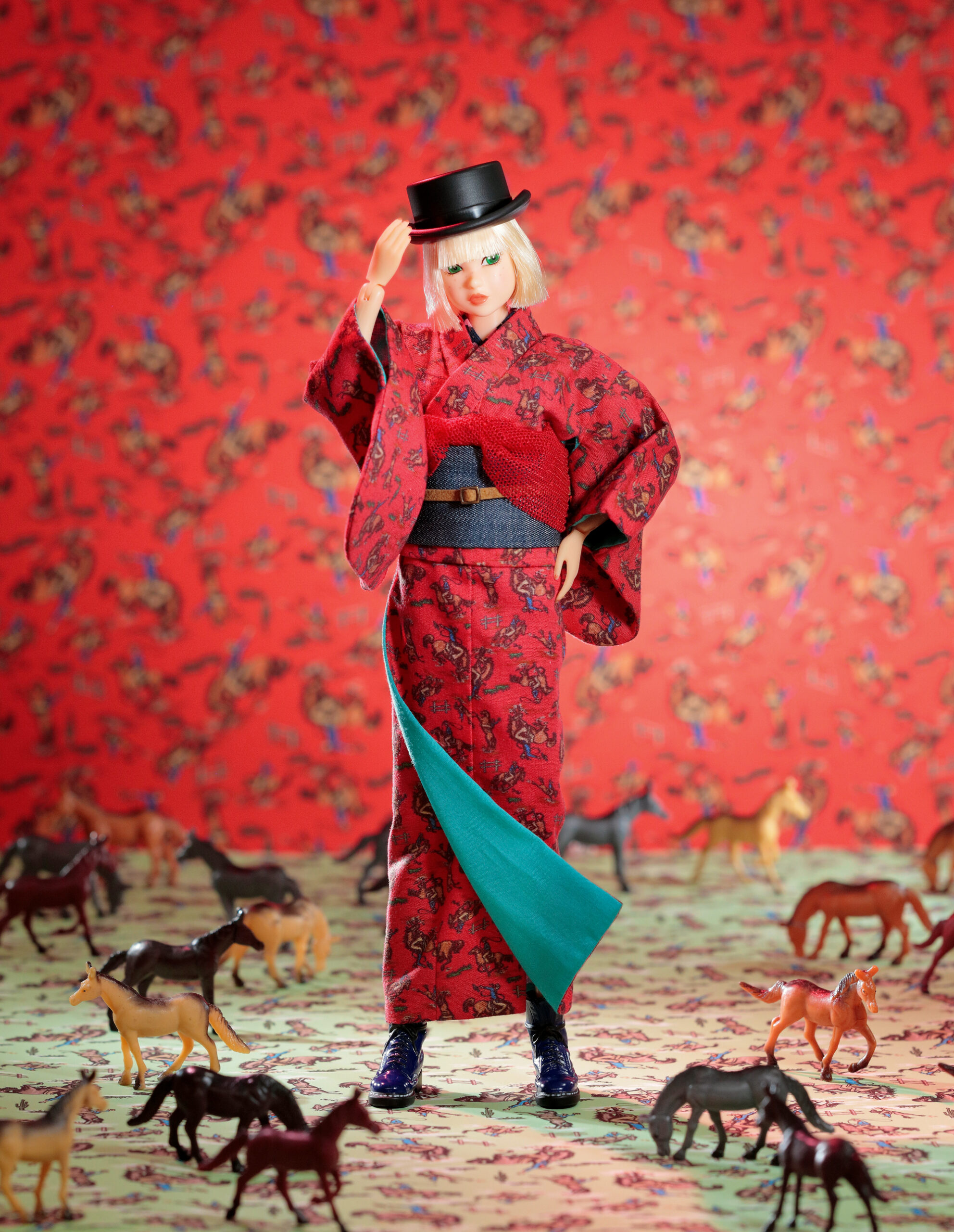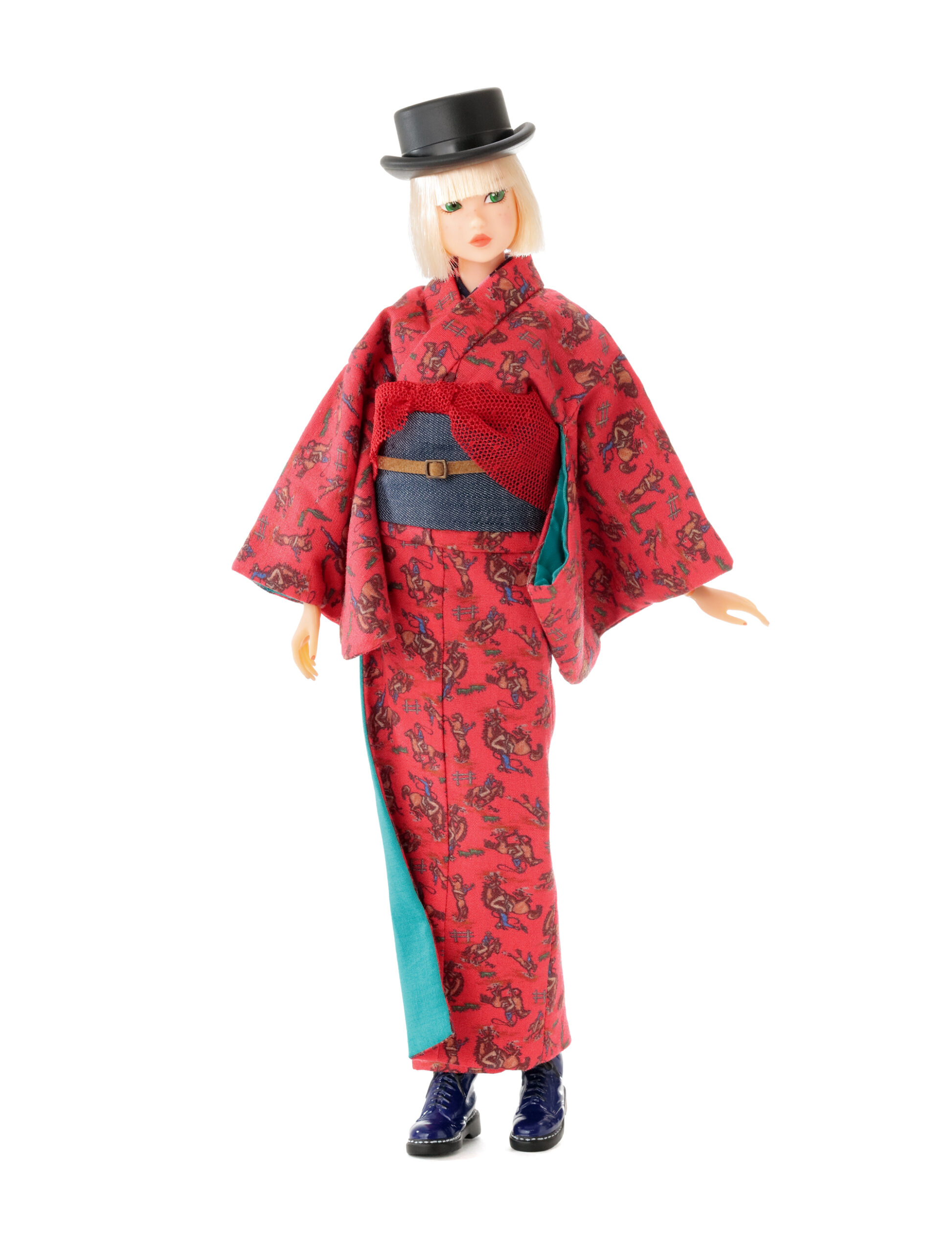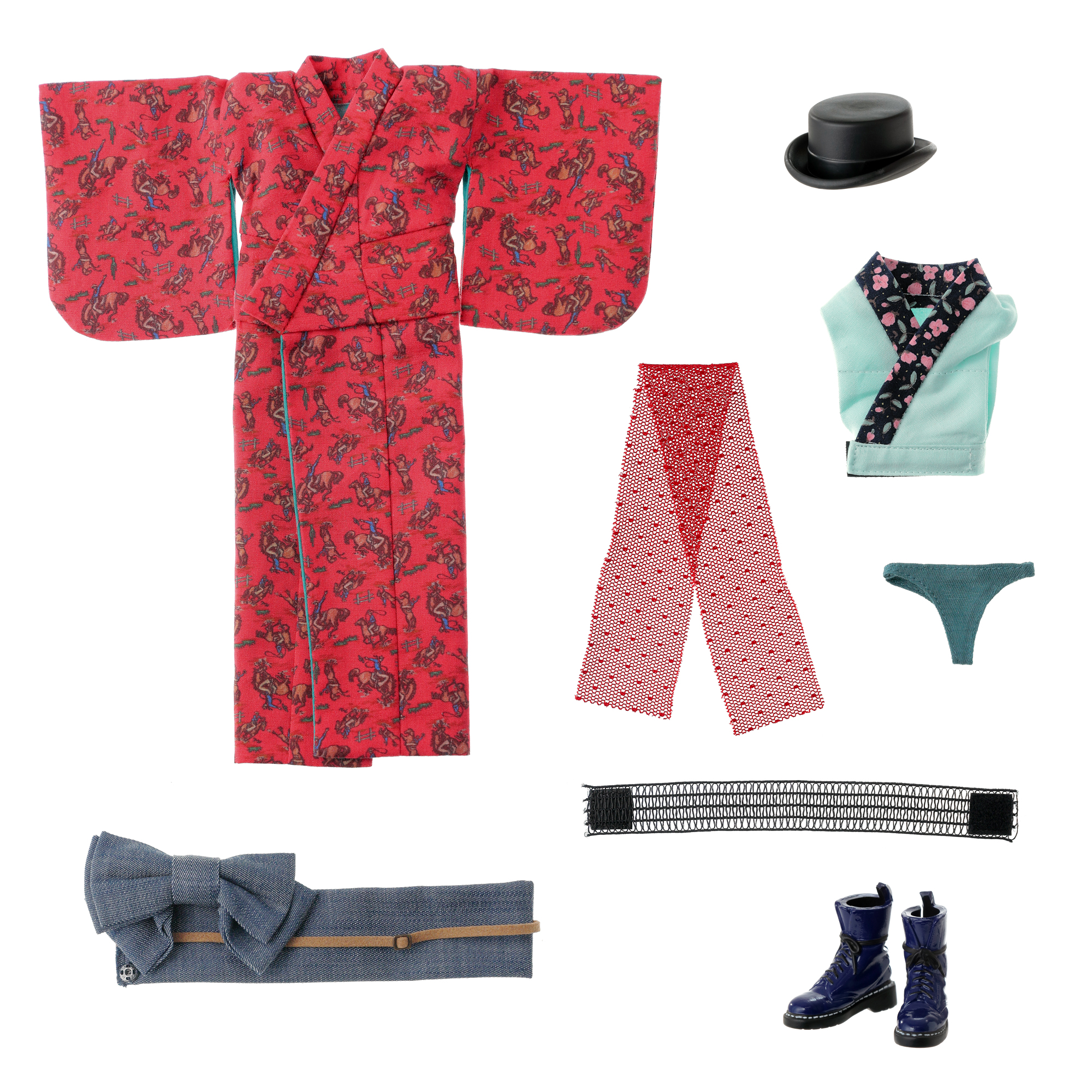 内容: PW-momoko本体、着物、ベルト付き作り帯、半襟付き肌着、帯揚、ゴム伊達締、Tバックショーツ、トップハット、10ホールブーツ(STOC)。
