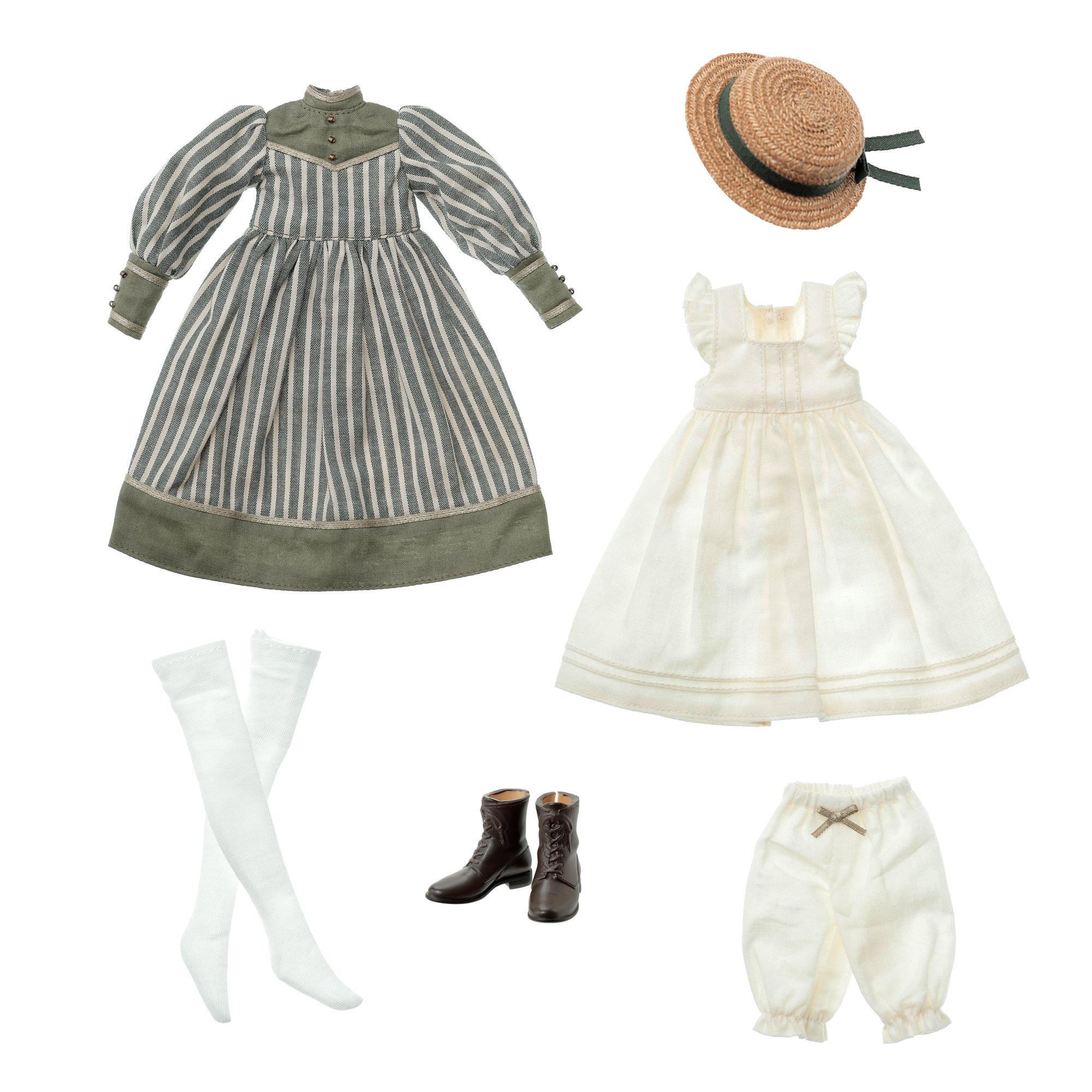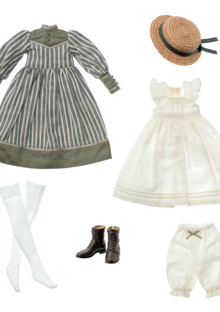 内容: ruruko本体、ストライプワンピース、アイボリーエプロン、ドロワーズ、ソックス、カンカン帽、ハーフブーツ(STOC)