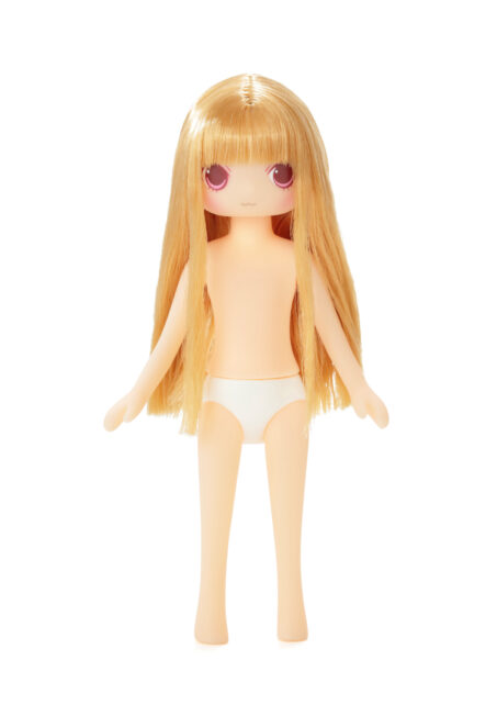 仕様詳細: 美白肌のうさぎぃボディ、ボルドーxストロベリーピンクのツリメ、ブラウンの口・眉、ピンク系チーク、ディープハニーブロンドのロングヘア植毛。